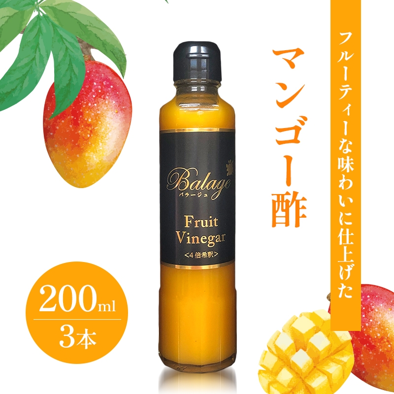 KK食品のフルーツ酢 200ml×3本セット(ギフト箱入り)(マンゴー酢×3本) 酢 フルーツビネガー 飲む酢 果実酢 ギフト 贈り物 浜松市 [№5360-0530]