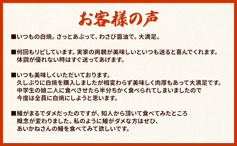 どこよりも新鮮で肉厚な「うなぎ白焼」、ご家庭で本格派うなぎをお楽しみくださいませ。