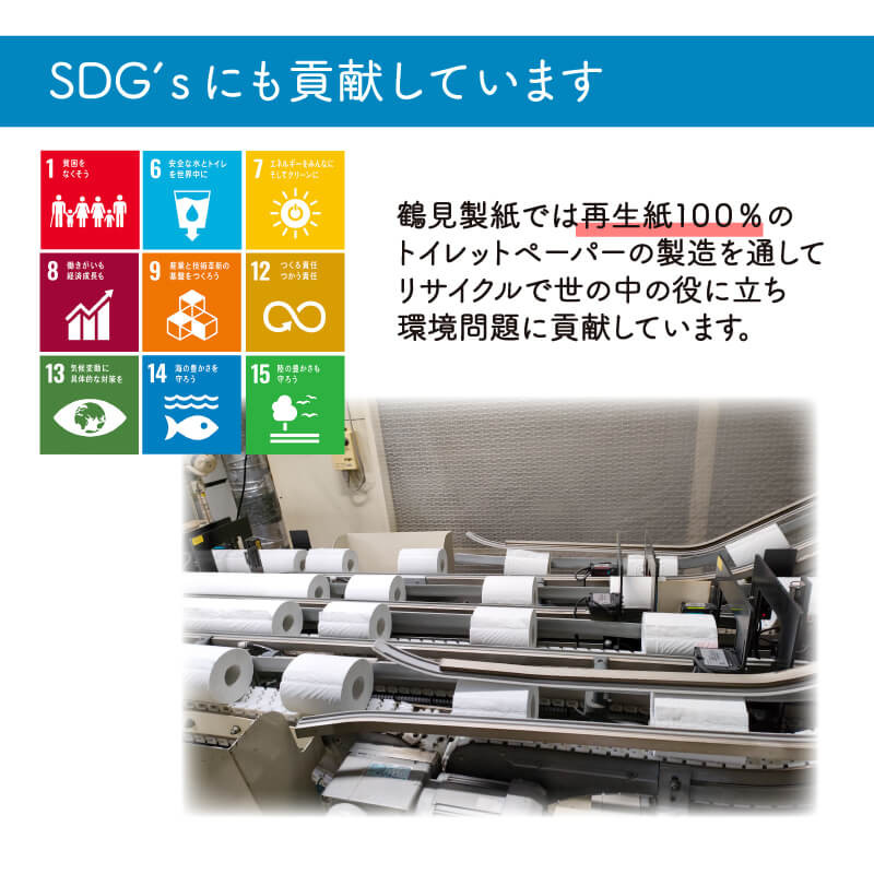 1パックに12ロール入った大容量です。上質の古紙を利用した「再生紙100%」で、人と環境にやさしい製品です。