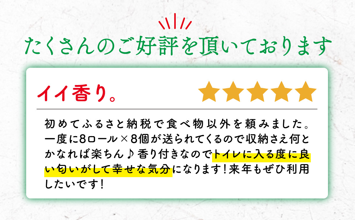 テレビで紹介されました!省スペースのトイレットペーパー トイレットペーパー 64ロール 8ロール 8パック ダブル 1.5倍巻き 香り付き トロピカル フルーツ カラー 再生紙 100% 長持ち 備蓄 防災 リサイクル エコ 消耗品 生活雑貨 生活用品 静岡 沼津 鶴見製紙 といれっとぺーぱー トイレ 備蓄 長持ち 再生紙 やわらか コスパ ランキング 収納 シャワー