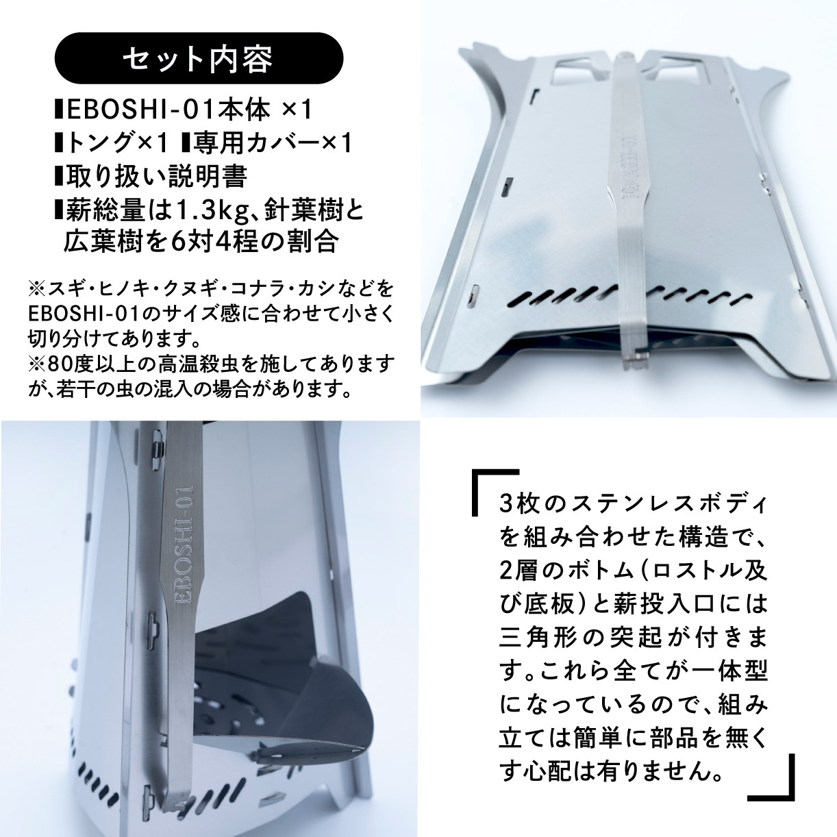折畳式薪焜炉『EBOSHI-01』スターター セット ジャスト サイズ …34,000 円 軽い!一体型の折りたたみ式ウッドストーブ焚き火台 - 常温便