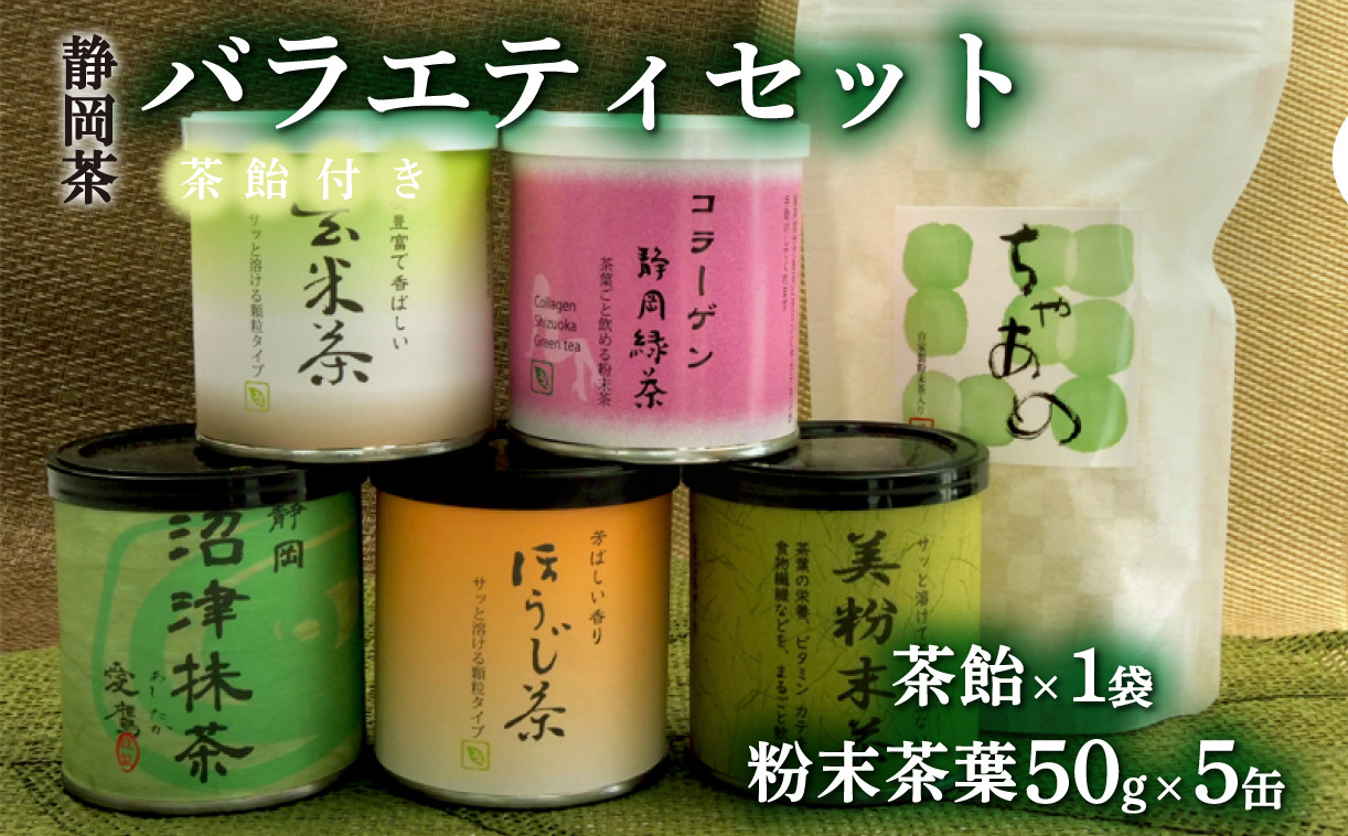 お子様からご年配の方まで楽しめる!芳醇な香り漂う玄米茶! 【沼津産】粉末・パウダー茶お楽しみセット バラエティ お手軽 煎茶 ほうじ茶 玄米茶 茶飴 コラーゲン入り 低カフェイン 愛鷹 母の日 父の日