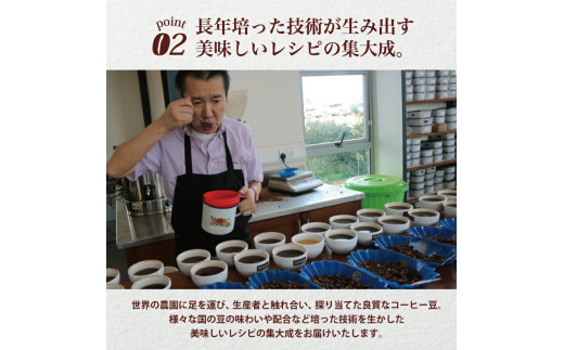 沼津市内で豆のブレンド・焙煎・粉砕・袋詰め等を行っており、製造工程のうち、原材料の豆の仕入れからすべての工程を職人の手で一つ一つ行うことで、本工程による付加価値は返礼品の付加価値のうち過半数以上を占めている。