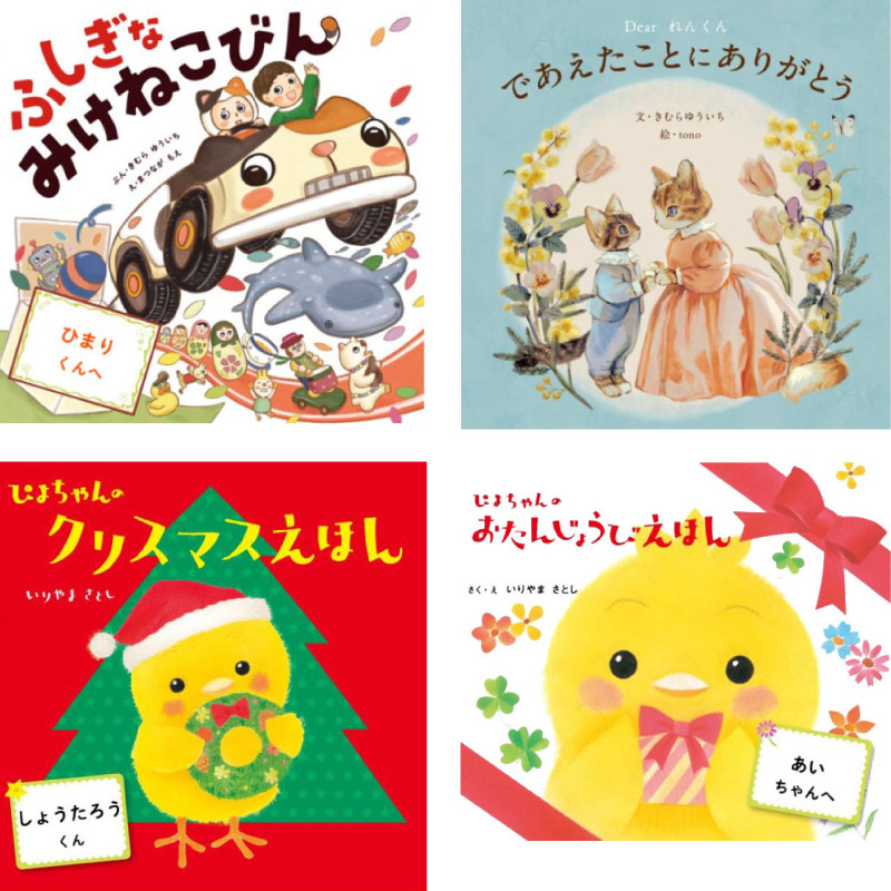 心のこもった世界に1冊だけの絵本ができあがるので、お子さんやお孫さんのお誕生日、出産祝い、入園・卒園祝い、クリスマスプレゼントなどに最適です。