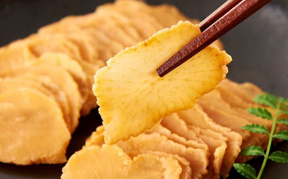 『蔵の恵』は、七尾たくあん浅次郎漬三年物を食べやすいミニサイズにした商品です。原材料は、天日干しした伊豆の契約農家の大根と、塩、米ぬかだけ。添加物を使わず、自然の恵みを活かしています。熟練の職人が三年間じっくりと漬け込み、素材の味を引き出しました。噛むほどに旨味が広がる、心地よい食感をお楽しみください。