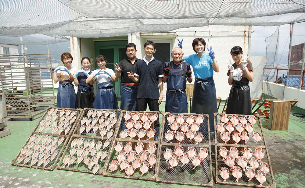 料理は愛情を込めてつくるとおいしく感じるように、干物もしかり。「小澤商店」の干物はつくる人の人柄や思いが込もった商品といえるのではないでしょうか。商品が届いたら、ぜひこの写真の方々の笑顔を想像してみてください。愛情込めてつくられた干物です。干物の身がほっこりしているように、きっと心がほっこりすると思いますよ。