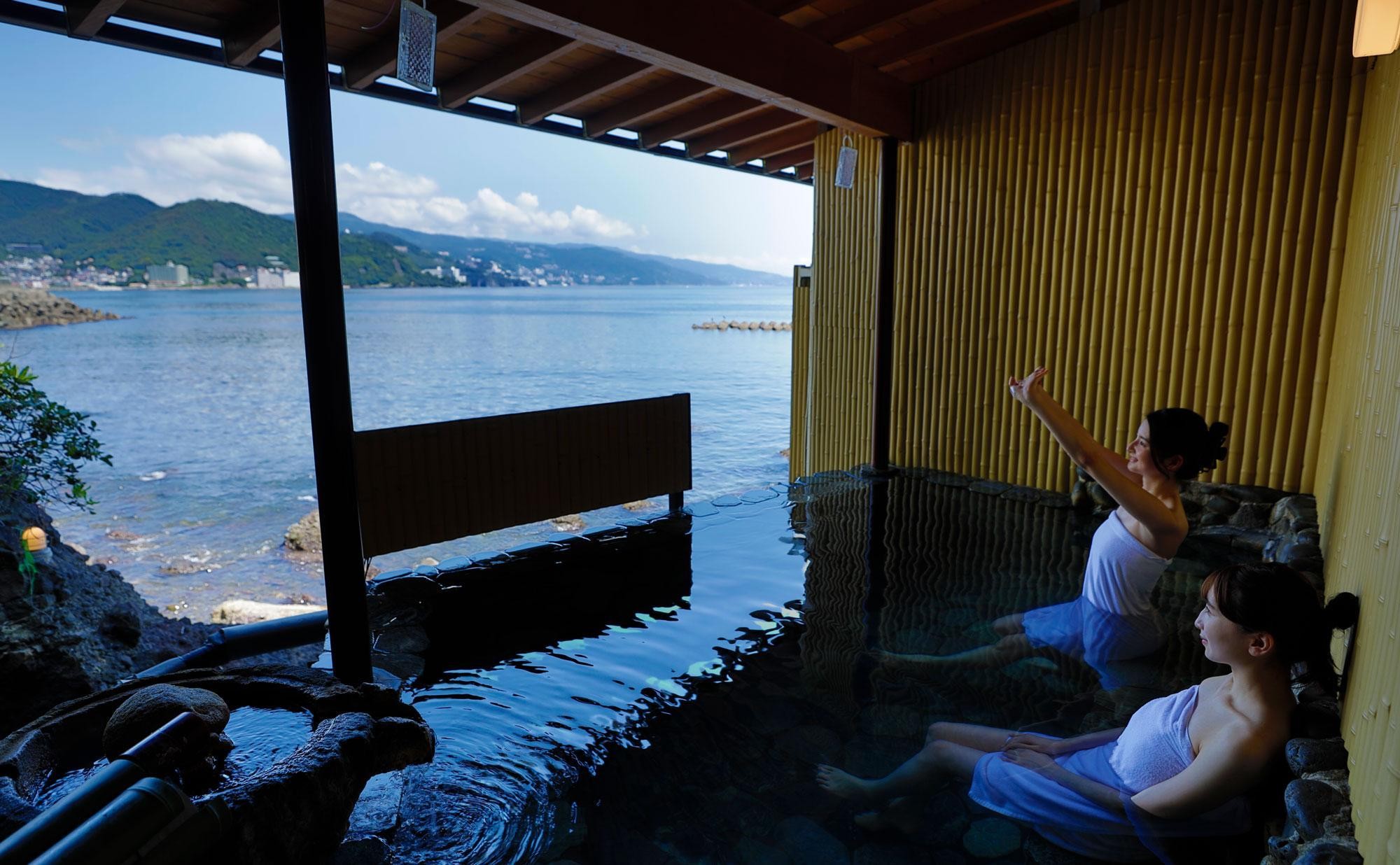海に浮かぶ絶景露天風呂は相模湾を望む素晴らしい眺めで、2本の源泉から毎分200リットルを湧出し、贅沢に源泉かけ流しを楽しめます。