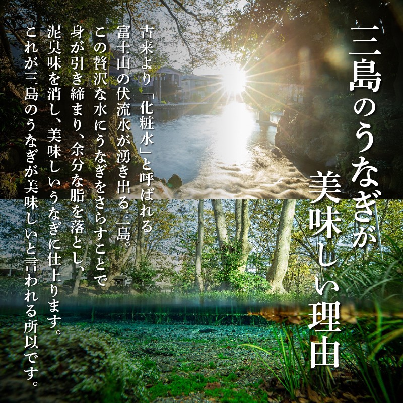 職人が1尾ずつさばき、柔らかく蒸し、丁寧に焼いてから真空パックにしておりますので、 温めるだけで三島名物の極上鰻をお召し上がりいただけます。 1日にご用意できる数に限りがございますので、 発送期日は下記を目安にご注文ください。 ◆◆◆ 日時指定あり ◆◆◆ ご指定の日時にご到着するよう発送いたします。 ============== 年内の日付指定は12月31日まで可能 年始の日付指定は1月15日から可能 ※1月1日~1月14日は指定不可となります。 ============== ◆◆◆ 日時指定なし ◆◆◆ 【通常期(下記以外)】1ヵ月以内に発送いたします。 【7月・8月ご注文】2ヵ月以内に発送いたします。 【9月・10月・11月・12月・1月・2月ご注文】3ヵ月以内に発送いたします。 ※年末年始やGW等の長期休暇中にお届けが重なる場合もございますので、 なるべくお届け日時をご指定くださいますようお願い申し上げます。 ※中元歳暮時期・年末年始・丑の日はご注文がたいへん混み合い、 お届けに遅れが生じることがございますのでご了承ください。 ※年末年始やGW、夏休み等の長期休暇期間は、 交通渋滞によりお届けに遅れが生じることがございますのでご了承ください。 ※天候や災害の影響でお届けに遅れが生じることがございますのでご了承ください。 ※活き鰻の入手が困難になってしまった場合、 お届けに遅れが生じることがございますのでご了承ください。 ※写真は全てイメージです。記載内容以外の食材や薬味、容器等は含まれません。 【2023年6月1日よりヤマト運輸転送費用発生について】 転居等でお届け先を変更しお荷物を転送する場合、 送り状記載のお届け先から変更後のお届け先までの運賃を収受いたします。 着払いの為、荷物を受け取るお客さまによるお支払いとなります。
