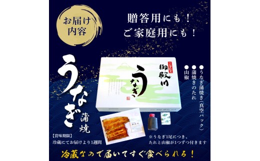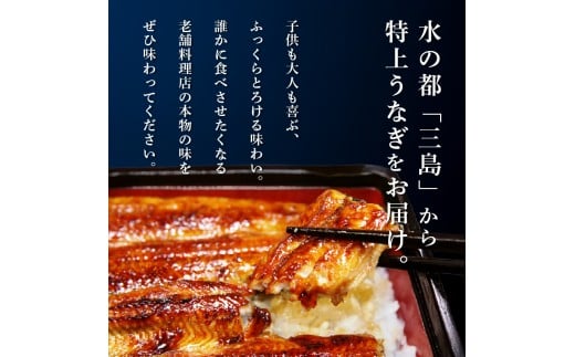 職人が1尾ずつさばき、柔らかく蒸し、丁寧に焼いてから真空パックにしておりますので、 温めるだけで三島名物の極上鰻をお召し上がりいただけます。 1日にご用意できる数に限りがございますので、 発送期日は下記を目安にご注文ください。 ◆◆◆ 日時指定あり ◆◆◆ ご指定の日時にご到着するよう発送いたします。 ◆◆◆ 日時指定なし ◆◆◆ 【通常期(下記以外)】1ヵ月以内に発送いたします。 【7月・8月ご注文】2ヵ月以内に発送いたします。 【11月・12月・1月・2月ご注文】3ヵ月以内に発送いたします。 ※年末年始やGW等の長期休暇中にお届けが重なる場合もございますので、 なるべくお届け日時をご指定くださいますようお願い申し上げます。 ※中元歳暮時期・年末年始・丑の日はご注文がたいへん混み合い、 お届けに遅れが生じることがございますのでご了承ください。 ※年末年始やGW、夏休み等の長期休暇期間は、 交通渋滞によりお届けに遅れが生じることがございますのでご了承ください。 ※天候や災害の影響でお届けに遅れが生じることがございますのでご了承ください。 ※活き鰻の入手が困難になってしまった場合、 お届けに遅れが生じることがございますのでご了承ください。 ※写真は全てイメージです。記載内容以外の食材や薬味、容器等は含まれません。 【2023年6月1日よりヤマト運輸転送費用発生について】 転居等でお届け先を変更しお荷物を転送する場合、 送り状記載のお届け先から変更後のお届け先までの運賃を収受いたします。 着払いの為、荷物を受け取るお客さまによるお支払いとなります。