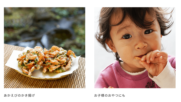 一口サイズの小ぶりなあかえびを使用しています。 漁獲後高温の熱風で焼いて丸ごと乾燥させるため、素材のうま味がぎゅっと閉じ込められています。 着色料や保存料などの添加物を一切使用していません。 おやつやおつまみとして、そのままカリッとお召し上がりになれます。 大人だけでなくお子様にもおすすめです。