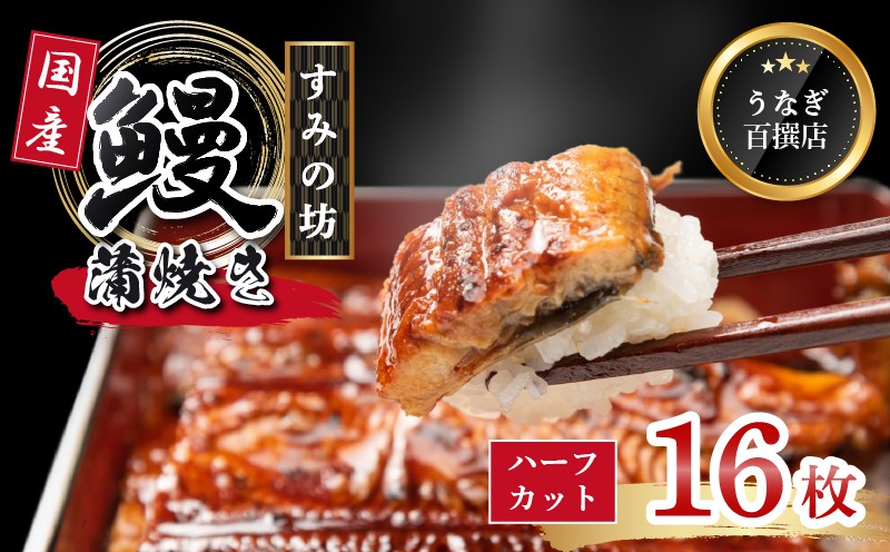 うなぎ料理の老舗「すみの坊」が提供するうなぎの蒲焼きハーフカット16枚です。