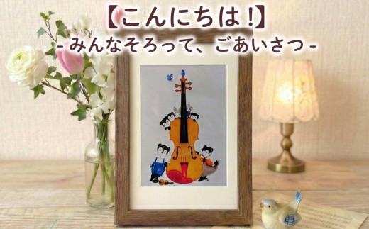 | 容量 | 【こんにちは!】1点 ※額装して発送いたします。 ※約16.9㎝×約12.2㎝(ハガキ大サイズ程度) |