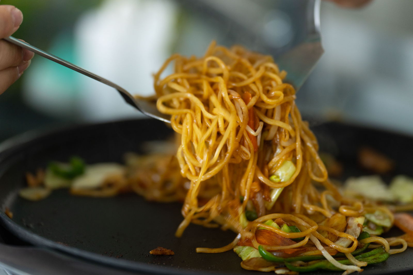 ご当地グルメの先駆けの「富士宮やきそば」は、独特の歯ごたえのある麺が特長です。