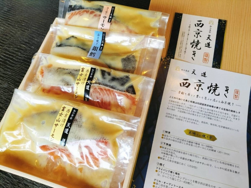 富士山麓の豊富な湧水で育つ富士山サーモンと厳選された銀鱈とサーモンの西京漬け3種4切セット。