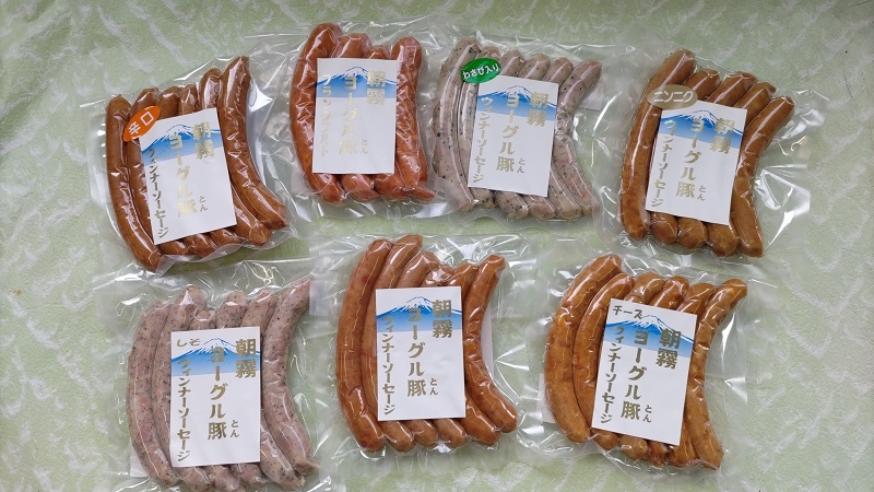 朝霧ヨーグル豚を使用して製造した ウインナーソーセージ 7種類の詰め合わせ 0024-01-01 朝霧ハム ヨーグル豚ソーセージセット