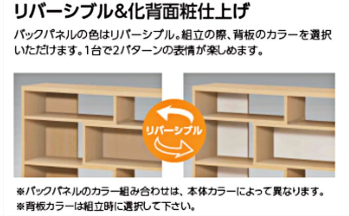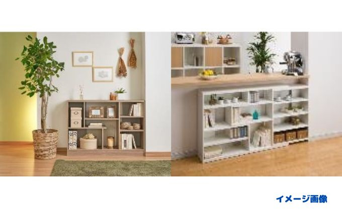 幅を伸縮できるデザインシェルフ。窓下・カウンター下・リビング等様々なシーンで活躍します。ラックを伸縮して、幅を調整できるので、お好みやお住まいのスペースに合わせてご利用いただけます。バックパネルの色はリバーシブルとなる為、一台で2パターンの表情が楽しめます。また、F=☆☆☆☆取得の低ホルムアルデヒド素材を使用しておりますので、小さなお子様のいるご家庭でも安心してご利用いただけます。