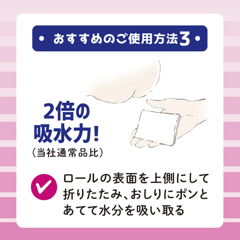 Tip To TipのスーパーWエンボス加工により、2倍の吸水性を実現。(当社通常品比)