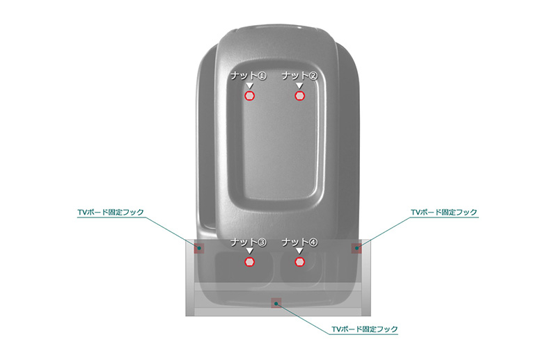 純正コンソールボックスに挟み込むだけの簡単取り付け。天井取り付け型テレビよりも配線も簡単で、走行時のバックミラーの視界を妨げないので、走行時の安全性にも優れています。走行時の安定性も抜群で、延べ120時間以上の走行テストをクリア。