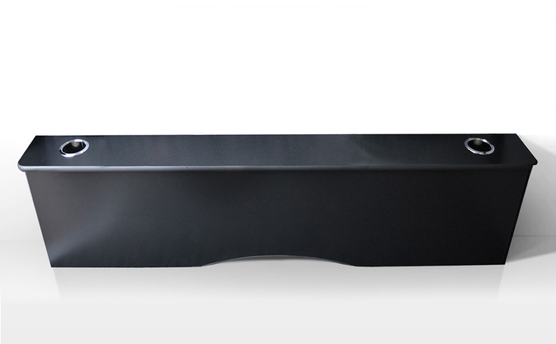 落ち着き有る高級感あふれるマットブラックの天板がハイエースの内装にマッチ。