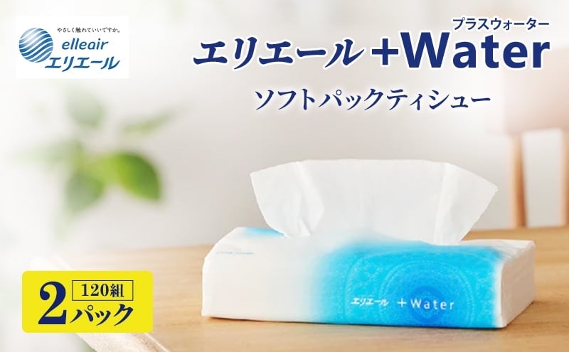 [№5695-2056]ティッシュ 【ふるさと納税】エリエール+Water(プラスウォーター)ソフトパックティシュー120組2パック ティシューペーパー 保湿 保湿ティッシュ 日用品 消耗品 静岡 静岡県 島田市
