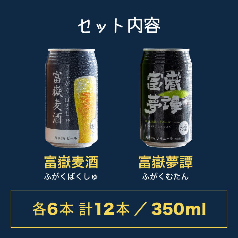 「富嶽」 350ml×12缶セット (富嶽麦酒 6本 + 富嶽夢譚 6本) ビール クラフトビール ハイボール 時之栖富士 富士市 お酒(a1478)