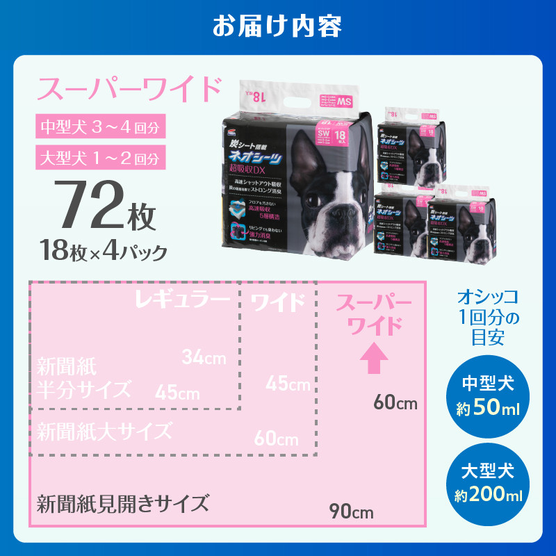 ペットシーツ ネオシーツ 超吸収DX スーパーワイド 4パック トイレシーツ ペットシート 活性炭 カーボン 消臭 超吸収 犬 トイレ システムトイレ ペット用品 ペット 日用品 消耗品 コーチョー 富士市