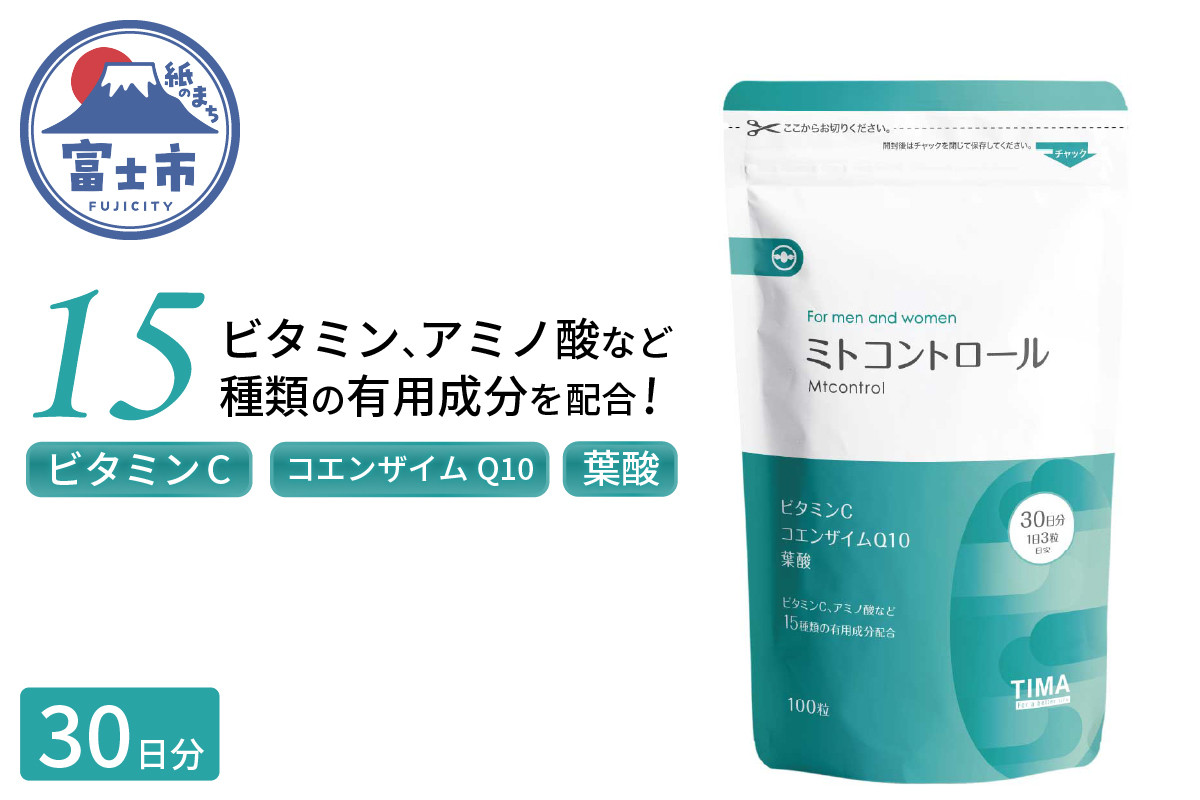 合計15種類の有用成分が、毎日の健康をサポート。 サプリメント 「Mtcontrol (ミトコントロール)」 100粒×1袋 TIMA Tokyo 富士市 加工品(1665)