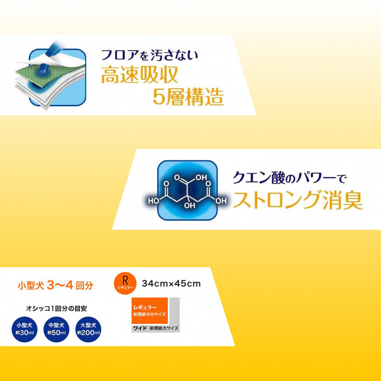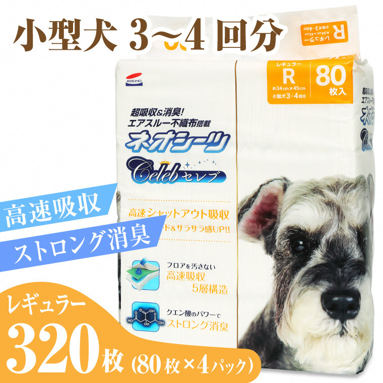 フロアを汚さない高速吸収5層構造!クエン酸のパワーでストロング消臭 ペットシーツ ネオシーツセレブ レギュラー320枚(80枚×4袋) 高速シャットアウト吸収 大容量 高品質 ストロング消臭 クエン酸 足漏れ防止 犬 猫 ペット 日用品 コーチョー 富士市 [sf002-146]