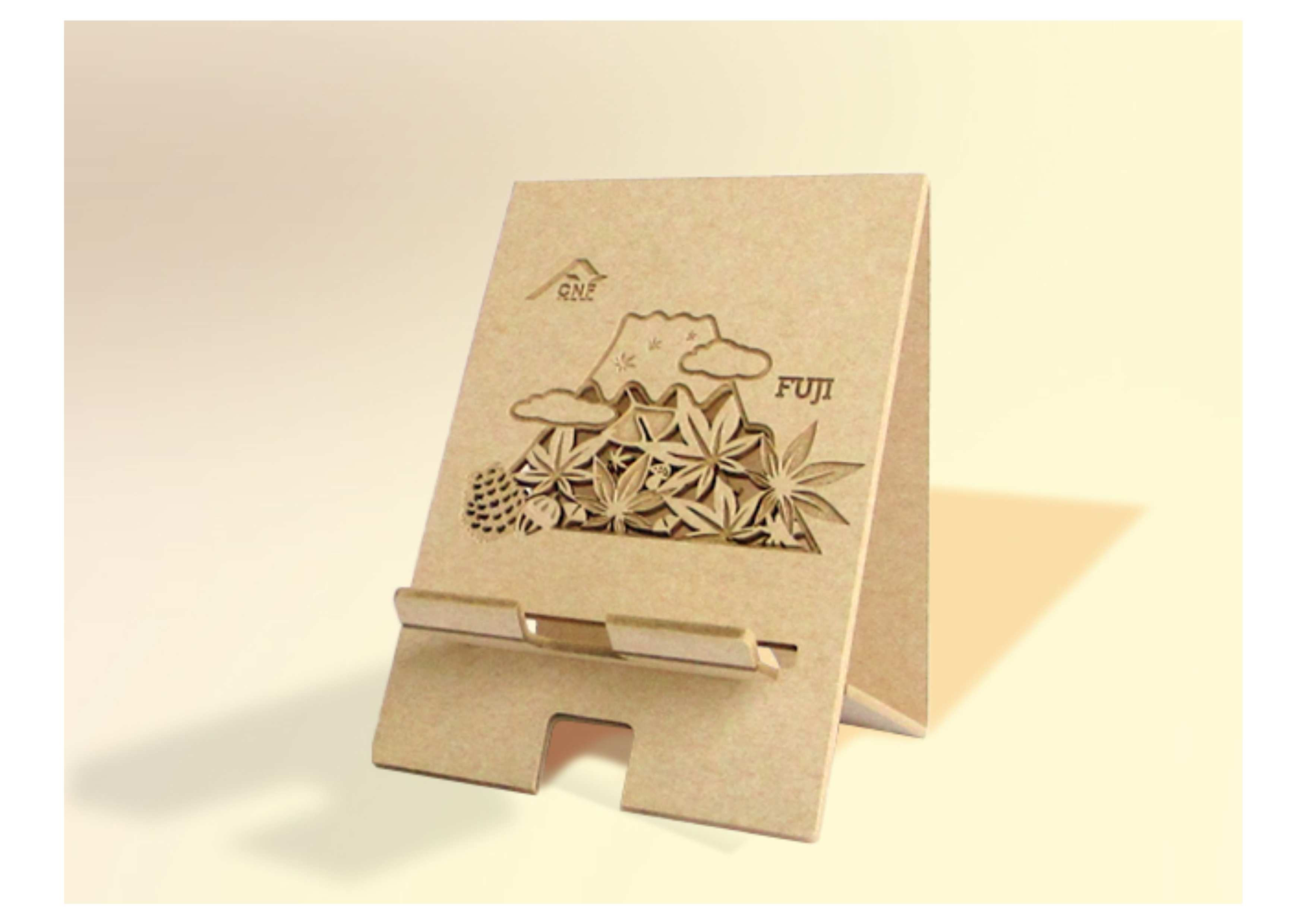 CNFを用いた剛性を高めた高密度・耐水性を持つ新素材板紙 「KAMIDE+CNF スマホスタンド 四季の富士」 大昭和加工紙業 富士市 日用品(1739)