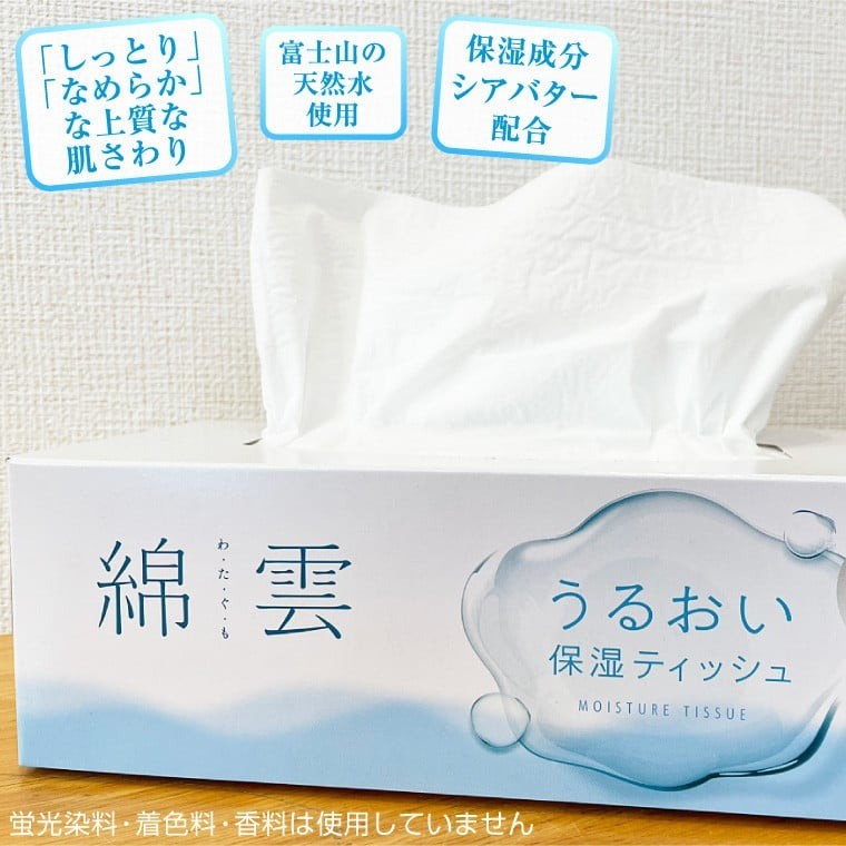 富士山麓の天然水と手漉き和紙技法でつくられた上質な肌ざわり ティッシュペーパー「綿雲うるおい保湿ティッシュ」30箱 (3箱×10セット) (1箱 200組) パルプ100% 保湿成分配合 しっとり なめらか イデシギョー 富士市 日用品(1775)