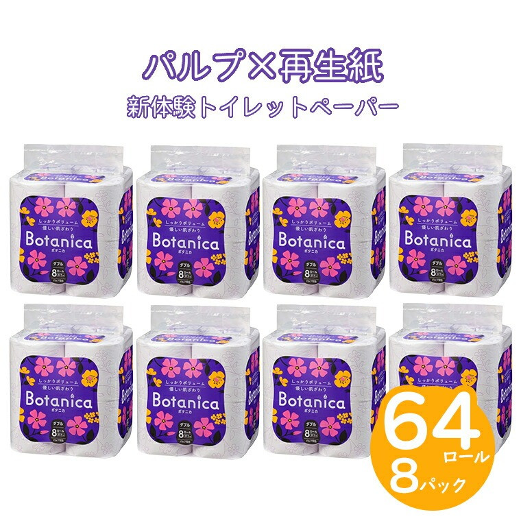 パルプで再生紙をサンドイッチ!柔らかさ+しっかり感を実現 96ロール相当 1.5倍巻き トイレットペーパー 「ボタニカ」 ダブル バイオレット 64ロール (8R×8P) (1ロール 37.5m) パルプ 再生紙 柔らか しっかり エンボス加工 無香料 無色 柄付き 長巻き 防災 備蓄 日用品 消耗品 生活用品 富士市 [sf002-191]