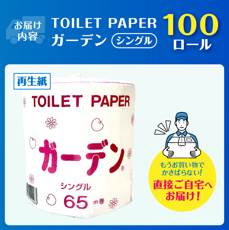 トイレットペーパー ガーデン シングル 65m 100ロール 個包装 再生紙100% 防災 備蓄 日用品 消耗品 生活用品 富士市