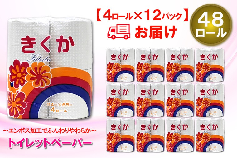 厳選された原料のみを使用したトイレットペーパー トイレットペーパー シングル 48ロール (4R × 12パック) 菊華 日用品 消耗品 備蓄 長持ち エコ 防災 消耗品 生活雑貨 生活用品 生活必需品 柔らかい 紙 ペーパー 再生紙 富士市 [sf077-011]