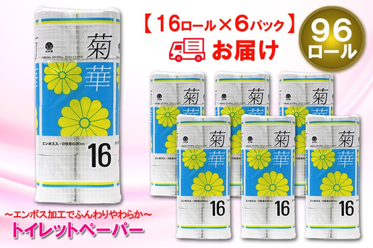 厳選された原料のみを使用したトイレットペーパー トイレットペーパー ダブル 96ロール (16個 × 6パック) 菊華 日用品 消耗品 備蓄 大容量 エコ 防災 消耗品 生活雑貨 生活用品 生活必需品 柔らかい 紙 ペーパー 再生紙 富士市 [sf077-023]