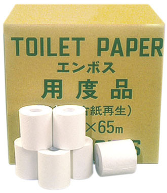 トイレットペーパー シングル 65m 100ロール 再生紙100% 固め エンボス加工 しっかり リサイクル 日用品 日用雑貨 消耗品 備蓄 防災 静岡県 富士市