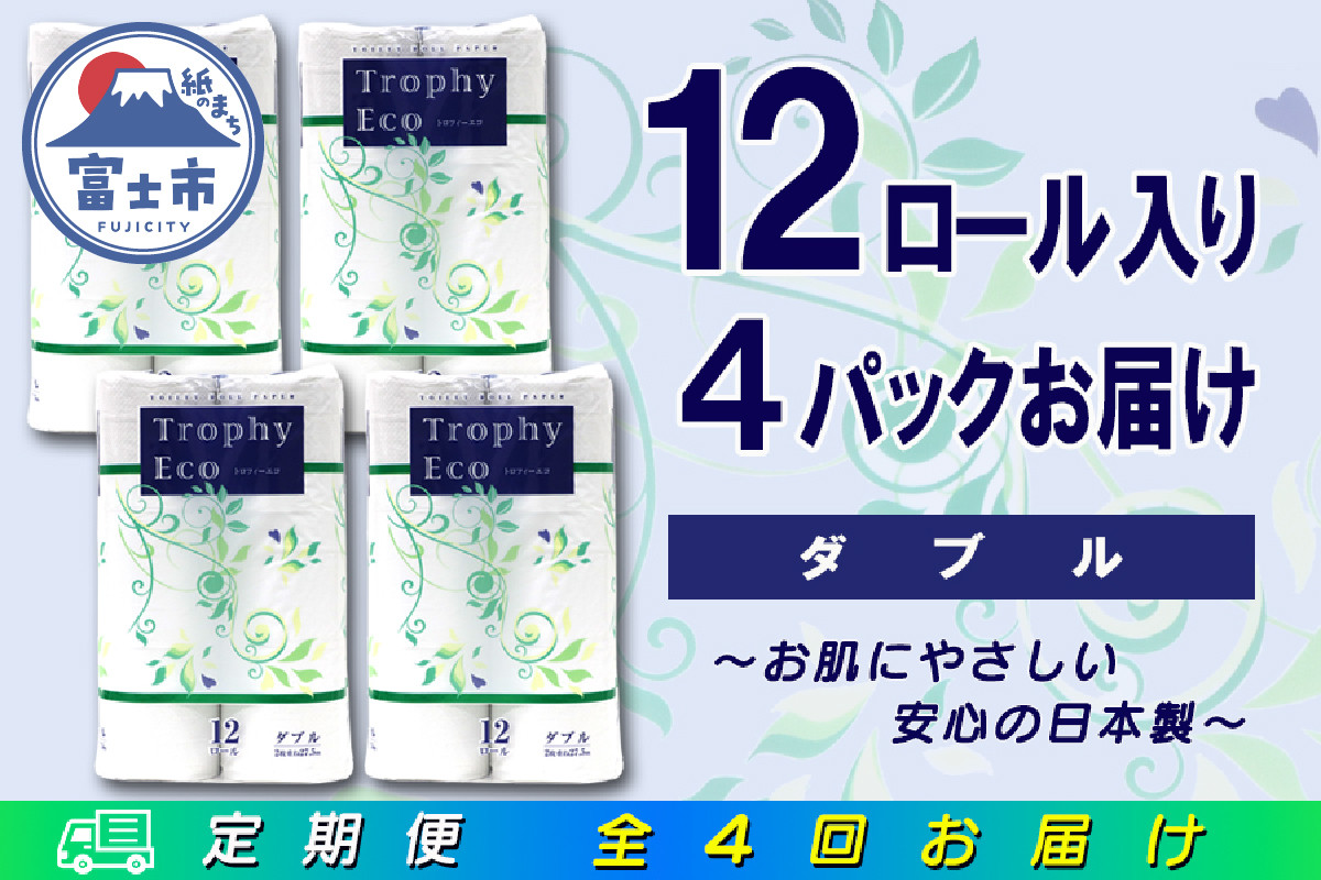 厳選された原料のみを使用したトイレットペーパー 定期便 【全4回】 3ヶ月に1回お届け トイレットペーパー トロフィーエコ 12R×4P(48個) ダブル 日用品 エコ 防災 備蓄 消耗品 生活雑貨 生活用品 紙 ペーパー 生活必需品 再生紙 富士市 [sf077-118]