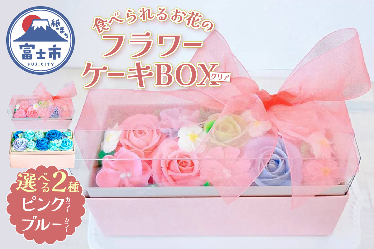 笑顔こぼれるお花のケーキボックスはいかがですか? ケーキ あん(餡)フラワーケーキ クリアBOX 冷凍 選べるカラー ピンク/ブルー リアルフラワースイーツ あんクリーム ケーキ シフォン 手作り スイーツ 焼き菓子 洋菓子 おやつ ギフト プレゼント 手土産 贈答 富士市 [sf002-378] [sf002-379]