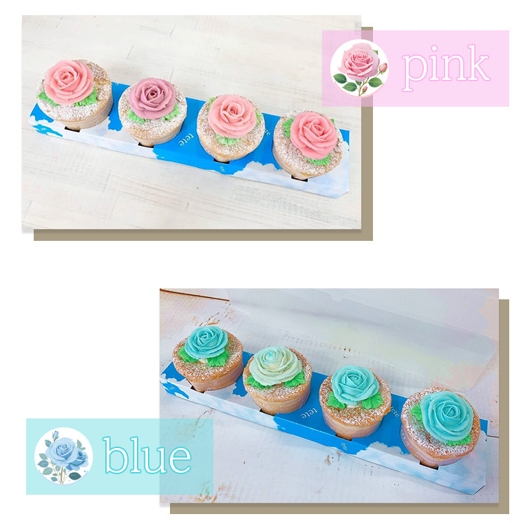 カップケーキ シャンティバラカップケーキ 4個セット 選べるカラー ピンク/ブルー リアルフラワースイーツ あんクリーム シフォン 手作り 焼き菓子 洋菓子 おやつ ギフト プレゼント 贈答 手土産 冷凍 富士市