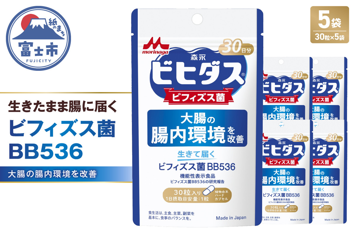 森永乳業 生きて届くビフィズス菌BB536 1袋30粒入 5袋 サプリメント 健康食品 カプセル 腸内環境 整腸 健康管理 腸活 機能性表示食品 富士市