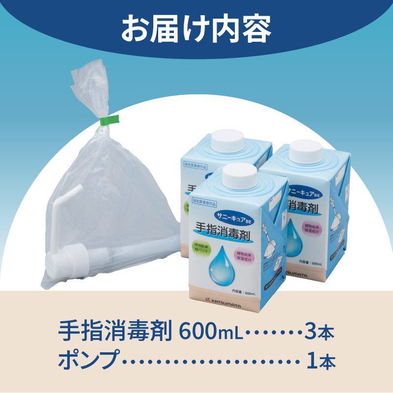 手指消毒剤 サニーキュアBE (ポンプ1本付き) 紙パック 3本セット 保湿成分配合 紙容器 リサイクル可能 環境にやさしい 脱プラ SDGs 静岡県 富士市