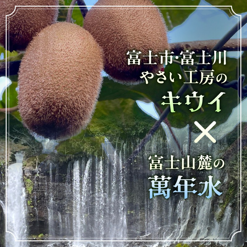 富士山麓で汲み上げられた「萬年水」に、富士市(旧富士川町)で収穫されたキウイを追熟により糖度を上げて丁寧に搾った果汁を加え、爽やかな香りとみずみずしい甘酸っぱさが調和し清涼感あふれる味わいのご当地サイダーです。