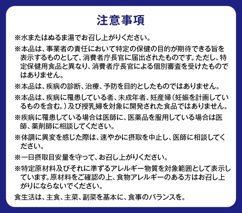 | 容量 | ■名称 DHC エラスチン 弾んでリフト 30日分 2個セット【機能性表示食品】 ■内容 内容量:20.1g[1粒重量335mg(1粒内容量210mg)×60粒]×2個 栄養成分表示:[2粒670mgあたり]熱量3.7kcal、たんぱく質0.34g、脂質0.25g、炭水化物0.03g、食塩相当量0.007g、ビタミンB2 1.2mg、ビタミンE 20.0mg 機能性関与成分:ボニートエラスチンペプチド110mg ■原材料 オリーブ油(スペイン製造)、エラスチンペプチド(魚由来)/ゼラチン、グリセリン、ビタミンE、ミツロウ、グリセリン脂肪酸エステル、ビタミンB2 ■保存方法 ●直射日光、高温多湿な場所をさけて保存してください。 ●お子様の手の届かないところで保管してください。 ●開封後はしっかり開封口を閉め、なるべく早くお召し上がりください。 ■注意事項 ※水またはぬるま湯でお召し上がりください。 ※本品は、事業者の責任において特定の保健の目的が期待できる旨を表示するものとして、消費者庁長官に届出されたものです。ただし、特定保健用食品と異なり、消費者庁長官による個別審査を受けたものではありません。 ※本品は、疾病の診断、治療、予防を目的としたものではありません。 ※本品は、疾病に罹患している者、未成年者、妊産婦(妊娠を計画しているものを含む。)及び授乳婦を対象に開発された食品ではありません。 ※疾病に罹患している場合は医師に、医薬品を服用している場合は医師、薬剤師に相談してください。 ※体調に異変を感じた際は、速やかに摂取を中止し、医師に相談してください。 ※一日摂取目安量を守って、お召し上がりください。 ※特定原材料及びそれに準ずるアレルギー物質を対象範囲として表示しています。原材料をご確認の上、食物アレルギーのある方はお召し上がりにならないでください。 ■提供元 株式会社ディーエイチシー |