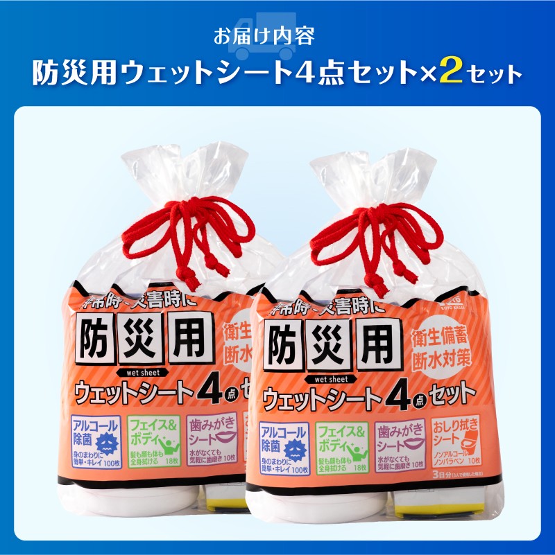 ウェットシート 防災用 4点セット 2セット 外出 アウトドア 運動後 緊急時 手軽 便利 衛生 防災 断水 備蓄 常備 富士市