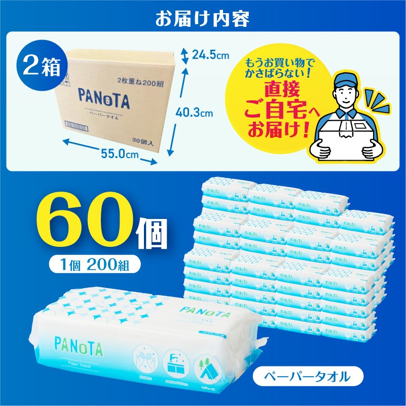 ペーパータオル PANOTA ソフトタイプ 60個 (1パック 200組 400…