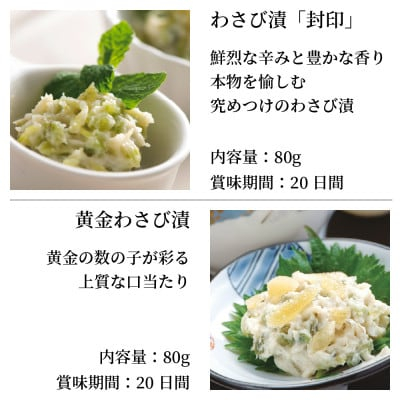わさび漬 4点セット わさび漬「封印」・黄金のわさび漬(数の子入り)・サクサクわさびのり・わさびみそ_ わさび漬 わさび漬け わさび ワサビ 山葵 漬物 漬け物 つけもの セット 惣菜 おかず つまみ ごはんのお供 送料無料 【1467307】