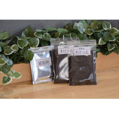 ・優れた消臭材(天然由来)2個と凝固剤が付属されています。
