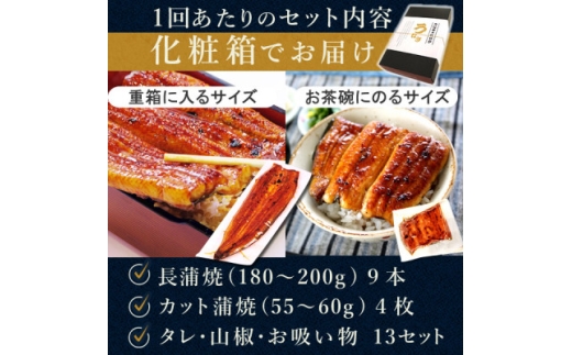 <2ヵ月毎定期便>浜名湖・うなぎのたなかの国産長蒲焼9本、カット小4枚※1回分約1.8kg全3回【4059975】
