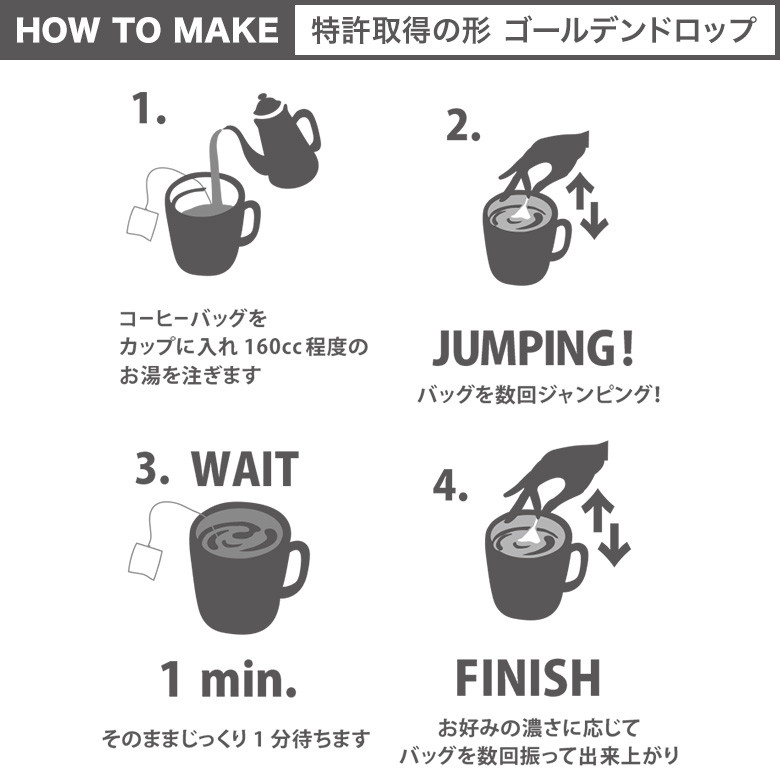 【説明】とっても簡単で手軽に珈琲を楽しめるティーバッグコーヒー。ビターブレンドと、軽めの口当たりで飲みやすいライトテイスト、フーデックス2018で美食女子金賞をいただいた有機生豆使用のデカフェブレンドをセットにしました。
