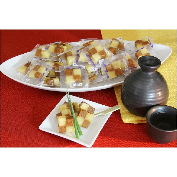 【説明】砂糖しょうゆで煮あげた角煮とチーズメーカーと共同開発した、チーズとの相性がよいおつまみ、お茶請けです。常温で保存でき、一粒ずつ個包装になっているため清潔に、持っていける場所も広がります。