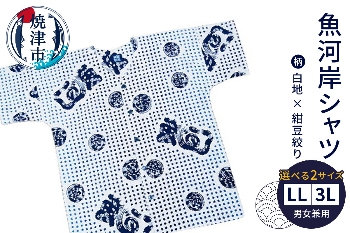 涼しく、すぐ乾く魚河岸シャツ! a20-415 魚河岸シャツ 上質 綿100% 焼津 夏 涼 祭 焼津 魚がし シャツ 白地×紺豆絞 LL/3L